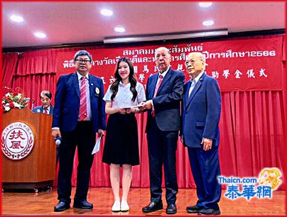 侨领马森荣委派三郎永富君代表阖家乐捐十万铢支持中华赠医所慈善